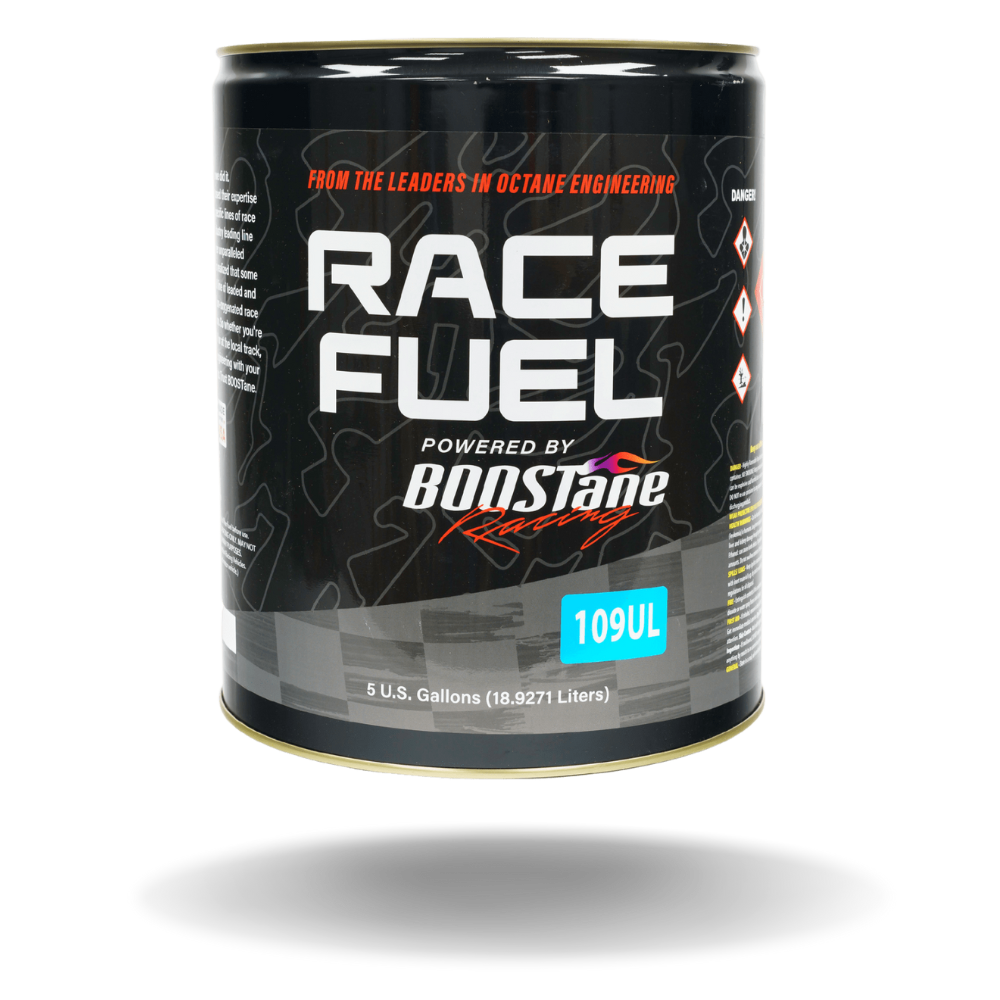 BOOSTane’s 109 Unleaded Race Fuel is for those high compression (boosted or N/A) applications that need a true un-leaded solution. Eliminating harmful components to catalytic converters and O2 sensors, 109 UL is the perfect, oxygenated formula racing fuel for your vehicle.